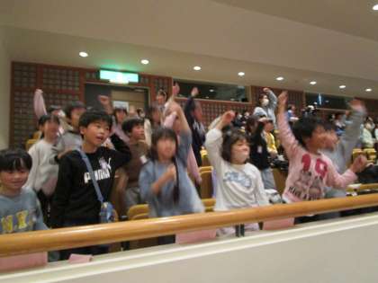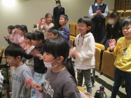 八尾高校の皆さんに招待していただき、「ハートフルクリスマス」に参加しました。楽しい劇やクイズ、素敵な演奏を楽しみました。特に、おわらや「ジャンボリミッキー」で思いきり踊って盛り上がりました。待ち時間等に、高校生のお兄さん・お姉さんが子供たちに優しく声を掛けてくださり、心が温かくなりました。