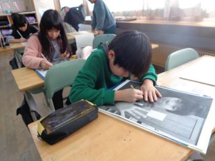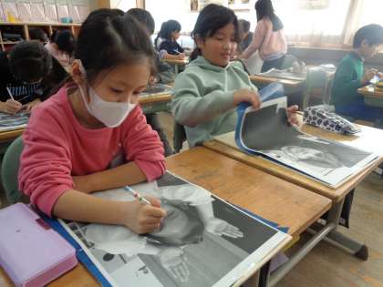 3年生 図画工作科 公開日 2023/12/14 更新日 2023/12/14 3年生 3年生の図画工作科では、彫刻刀を使って版画に挑戦します。現在は、ポーズを決めた自分の写真を版木に写しているところです。早く彫刻刀を使ってみたいと子供たちはわくわくしています。
