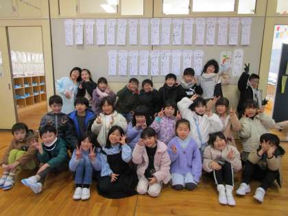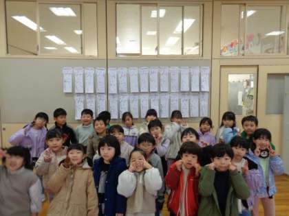 冬休みに、「書き初めの練習を頑張ったよ」と嬉しそうに報告する子供が多くいました。本番は、集中して真剣に、お手本を見て、一文字一文字丁寧に書いていました。