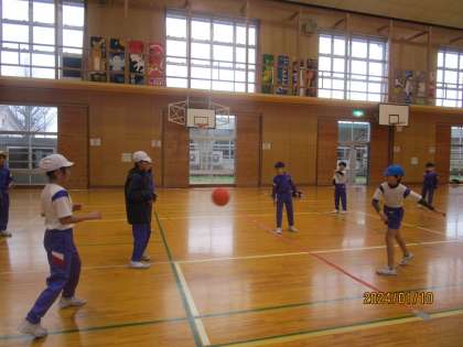 3年 3学期初めての体育をしました 公開日 2024/01/10 更新日 2024/01/10 3年生 寒い中でしたが、子供たちは元気に大縄跳びやボールボールをしました。回を重ねるごとに上手になっていく子供たちです。