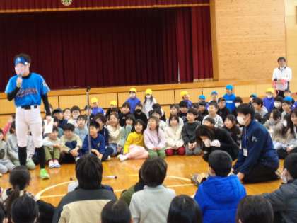 6年生 グローブお披露目会 公開日 2024/02/03 更新日 2024/02/03 6年生 大谷選手から全国の小学校に贈られたグローブが本校にも届き、お披露目会が行われました。 全校でボールやグローブに親しむ時間もとりました。 少しでも野球に興味をもってくれる人が増えるといいですね。