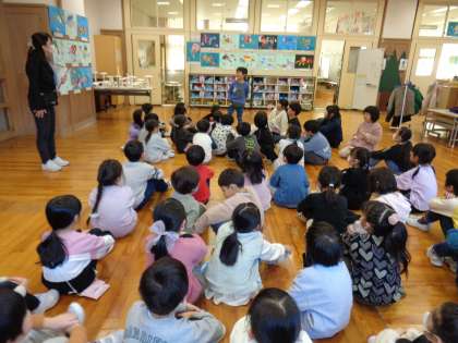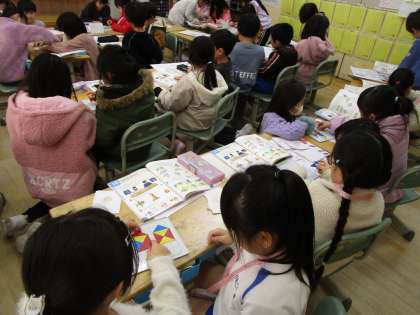 来年度入学する予定の年長さんとの「なかよし」交流会を行いました。国語や算数の学習を体験したり、業間になわとびやけん玉などの遊びを楽しんだりしました。交流会後には、「年長さんの文字がきれいだった」「なわとびの技がいろいろできていてすごかった」などと振り返りました。