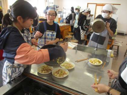 6年生 調理実習(竹組)2 公開日 2024/02/13 更新日 2024/02/13 6年生 どのグループも班の仲間と協力して、おいしく仕上げていました。 次に使う人のことを考えて、後片付けまで丁寧に行っていました。