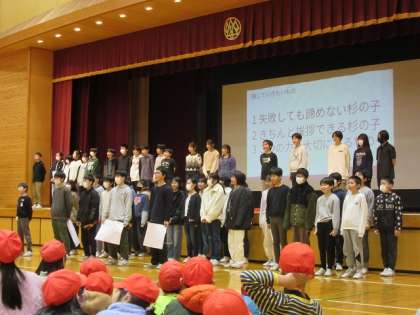 6年生 児童集会 公開日 2024/02/15 更新日 2024/02/15 6年生 児童集会で1年間の思い出や1〜5年生さんに向けてのメッセージを劇にして発表しました。 これまでの学校生活に対する感謝の気持ちやこれからの杉の子の活躍を期待する思いを一生懸命に伝えていました。