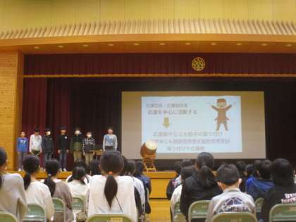 6年生 バトンタッチ集会第二部 1 公開日 2024/02/15 更新日 2024/02/15 6年生 第二部では、5年生に向けて、最高学年としての心構えや式の準備、運動会の役割などについて紹介しました。