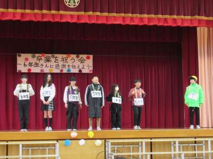 今日、1月から準備を進めてきた卒業を祝う会の本番がありました。実行委員会を中心に進めてきた卒業お祝いプロジェクトの集大成。進行や各学年への協力依頼、会場設営にプレゼントの作成等、それぞれのグループで進めてきた準備や計画が見事につながり、心温まる素敵な会になりました。6年生さんに今までの感謝の気持ちや、お祝いの気持ちを伝えることができたと思います。自分たちで1からつくり上げた卒業を祝う会は大成功に終わり、子供たちは達成感を味わいました。