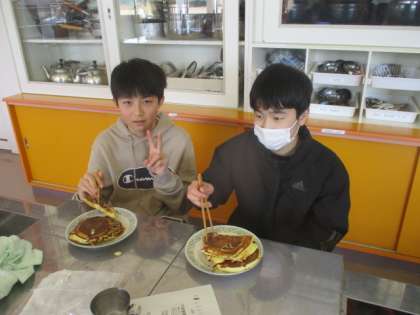 6年生 スイーツ作り 公開日 2024/03/11 更新日 2024/03/11 6年生 卒業までにしたいことの一つ、スイーツ作りに挑戦しました。 焼き加減を見極めるのに苦労しながらも、友達と協力して楽しく調理していました。 完成したホットケーキやクレープをおいしく味わい、みんなで楽しい時間を過ごすことができました。