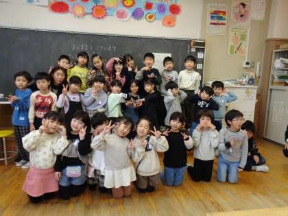 1年竹組 クラス写真 公開日 2024/03/24 更新日 2024/03/24 1年生 感染症の流行でなかなか全員そろっていませんでしたが、修了式には、27人全員そろいました。1年生の教室で過ごすのは最後です。この一年間とてもよくがんばりました。
