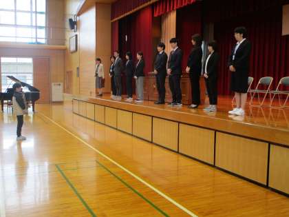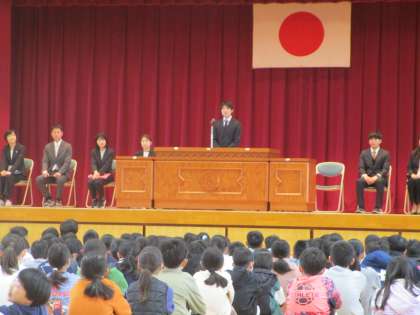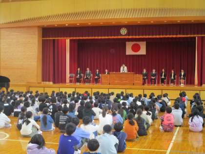 杉原小学校に、新たに14人の教職員の方々が着任しました。 6年生の代表児童が、歓迎の気持ちを言葉で表しました。