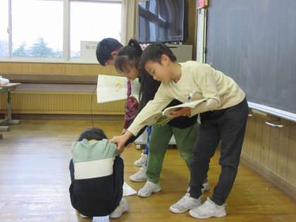 3年生 詩の音読 公開日 2024/04/11 更新日 2024/04/11 3年生 「どきん」をどのように音読するかを話し合い、発表しました。言葉の調子を変えたり、動きで表したりして、詩を楽しむことができました。