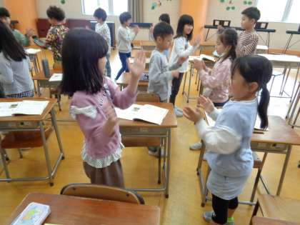 「茶摘み」の歌やリズムに合わせて、手遊びをしました。
