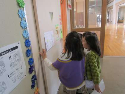 1年生さんと一緒に学校探検をしました。最初に自己紹介をして、手を繋いでいろいろな教室を回りました。2年生が考えたクイズをしたり、スタンプラリーをしたりして楽しみました。1年生さんと仲良くなれたよと言う子供が多く、充実した時間になりました。