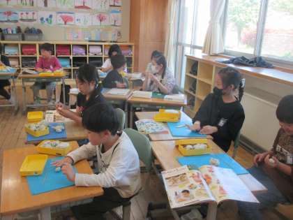 2年松組 学習の様子 公開日 2024/04/26 更新日 2024/04/26 2年生 今週は、国語の「ふきのとう」の音読発表をしました。竹やぶ、お日さま、はるかぜ役のときは、椅子の上に乗ったり、ふきのとう役の子は机の下に入ったりするなど、役になりきって、みんなで楽しく音読しました。図工では、粘土で「おもいでをかたちに」をしました。どの子も、細かいところまで丁寧につくっていました。