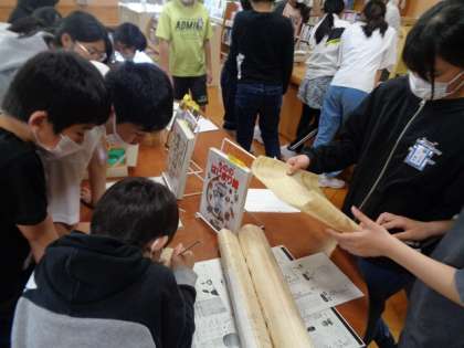 6年生 図書オリエンテーション 公開日 2024/04/26 更新日 2024/04/26 6年生 図書オリエンテーションでは、本の歴史について、司書の先生から詳しく教えていただきました。石や木、和紙など何度も形を変えて今の本の姿になっていることに驚いていました。