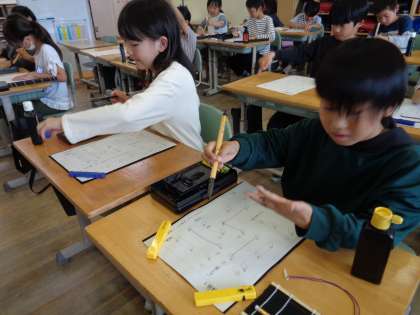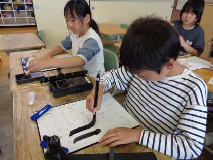 4年生になってから初めての毛筆の授業でした。3年生で学習した始筆や終筆、とめ、はらいを思い出しながら丁寧に書きました。