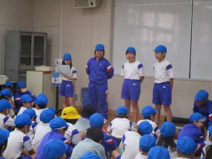 立ち姿勢や声の出し方、応援の振り付けなどを下級生に伝えました。子供たちは、「みんなの声がそろうと、大きくなって驚いた」「1年生に教えるのが難しかった。どうやったらうまく伝わるかな」と、振り返りながら、次の応援練習に向けてできることを考えました。