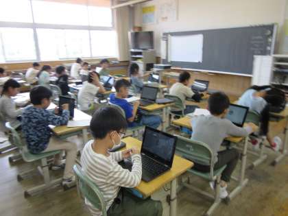 フォームを使って、学校のまわりの様子と地図記号のテストを行いました。初めてでしたが、これまでの経験と学んだことを生かして取り組んでいました。