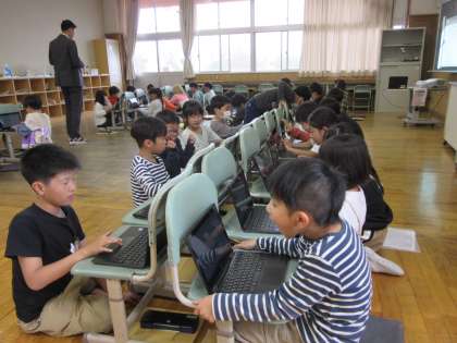 3年生 総合 公開日 2024/05/08 更新日 2024/05/08 3年生 初めての総合の時間でした。杉原地区の「おたから」について意見を出し合い、スライドに入力しました。データが消えるなど困ることも多くありましたが、みんなで協力して取り組みました。