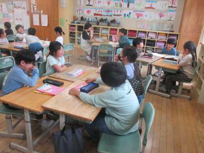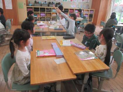 「なかよしトーク」では、自分が話したいことを自由に伝え合っています。質問する力も伸びていて、いつも盛り上がっています。