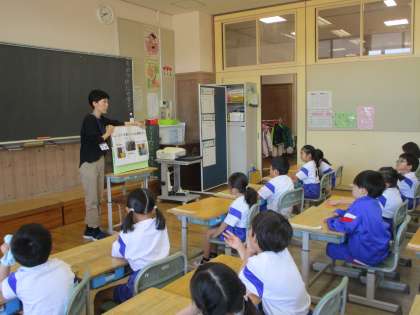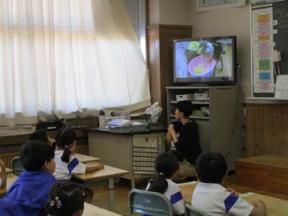 1年生 給食室の話をきいたよ! 公開日 2024/05/11 更新日 2024/05/11 1年生 三海先生から給食室の様子や給食の作り方について教えていただきました。子供たちは興味津々で動画や紙芝居を見ました。「こんなに野菜を使っているんだ」「暑くて大変そう」など、いろいろと気付きがあったようです。