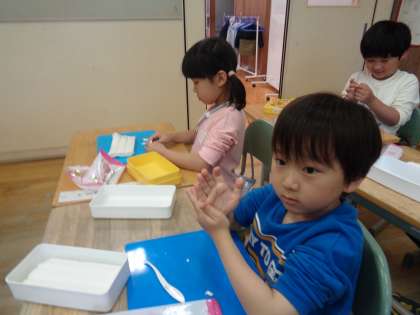 できた形を友だちと見せ合ったりクイズを出したりして思い思いの形を作っていました。