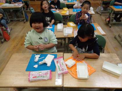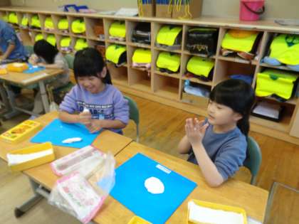 図画工作科では、ねんどでいろいろな形をつくって楽しみました。