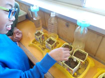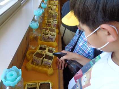 理科の学習で育てている植物の芽が出ていました。