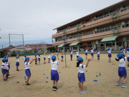運動会に向けて一生懸命に玉入れの練習をしています。