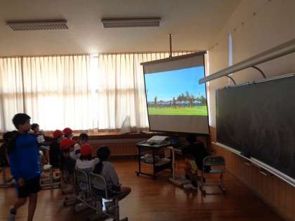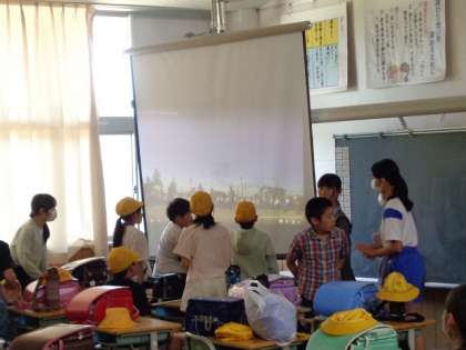 運動会予行の後、撮影した自分たちの団の応援を観て振り返りました。