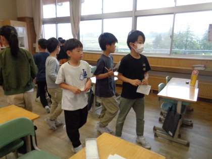 今日は、クイズ係が企画したクイズラリーをみんなで楽しみました。教室内に隠された7問を探し、友達と協力して解きました。