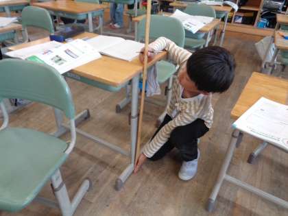 3年生 算数 公開日 2024/05/28 更新日 2024/05/28 3年生 1mものさしを使って、ドアの幅の長さや机の高さを測りました。また、バケツの周りの長さを測るにはどうしたらいいのか考え、巻き尺を使って測ることにしました。