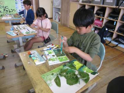 3年生 図画工作科 公開日 2024/06/06 更新日 2024/06/06 3年生 先日見付けたお気に入りの葉っぱをつかって、自分の図鑑をつくりました。何度も試して自分だけの緑色を作り、飾り付けを楽しむ子供たちでした。