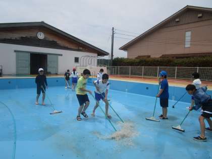 6年生 プール掃除 公開日 2024/06/06 更新日 2024/06/06 6年生 プールの中や更衣室、通路の掃除をしました。プールの床や壁の汚れを落としたり、落ち葉を拾ったりすると、とてもきれいになりました。プールに入ることが楽しみになりました。