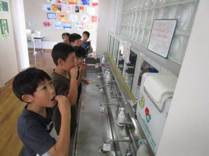 今日は全国小学生歯磨き大会に学校を代表して参加しました。いつもの歯磨きの仕方で歯垢が落ちているのかや、デンタルフロスの使い方を学び、給食後には早速実践していました。明日からも続けていきたいです。