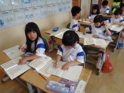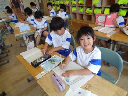 友達や先生と知っている言葉を出し合ってしりとりを楽しんでいました。