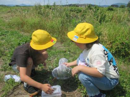 2年生 生きものとなかよし 公開日 2024/06/11 更新日 2024/06/11 2年生 本日、2年生は生活科の学習で、グラウンドそばの田んぼへ出て、生きものをつかまえまたり、つかまえた生きものの観察をしたりしました。虫網や虫かごを巧みに扱ったり、生きものと格闘したりしながら、子供たちは自然や生きものと仲良くなっていきました。 保護者の皆様方には、お忙しいところ、子供たちのため、持ち物や服装等の準備をご協力くださり、ありがとうございました。