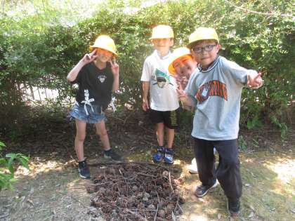 2年生 生活科 町たんけん〜黒田方面〜 その2 公開日 2024/06/13 更新日 2024/06/13 2年生 黒田公民館では、遊具などで思いきり遊びました。「黒田公民館には、ベンチがあって休めるからいいな」「松ぼっくりがたくさん落ちているにも楽しいね」などと、黒田公民館の「すてき」を感じながら、楽しんでいました。
