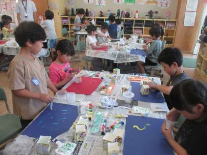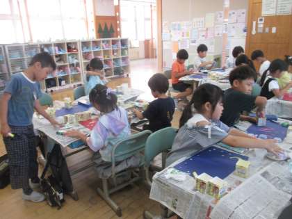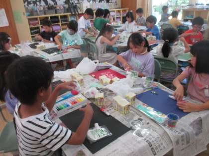 2年生 図工「とろとろ絵のぐ」 公開日 2024/06/14 更新日 2024/06/14 2年生 白い液体粘土に、絵の具を入れて指で混ぜ混ぜ…とろとろした触り心地を楽しむ子供たちの表情は、にこにこ笑顔。水彩絵の具が混ざりきる前の模様を生かしたり、指だけでなく、手も使ったりして、子供たちは思いのままにかくことを楽しんでいました。余った液体粘土は持ち帰りましたので、ぜひご家庭でも楽しんでみてください。
