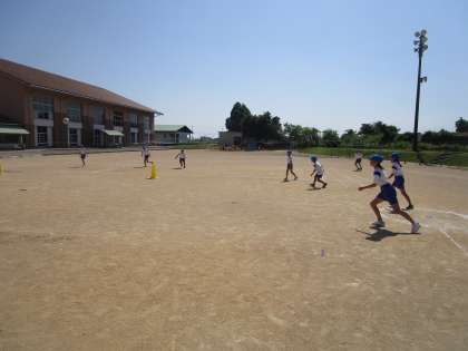 5年生 体育 キックベース公式戦 公開日 2024/06/14 更新日 2024/06/14 5年生 体育のキックベースでは、練習試合や話合いを経て、今日から公式戦を始めました。ボールを蹴る場所や守備の陣形が様々に工夫され、見応えのある試合でした。また、クロムブックを使ってスコア表をつけています。どの団も優勝を目指して頑張っています。