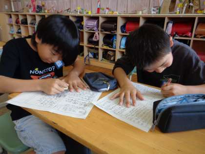 国語科では「新聞をつくろう」の学習をしています。宿泊学習でのニュースを見出しやレイアウトを工夫して制作しています。