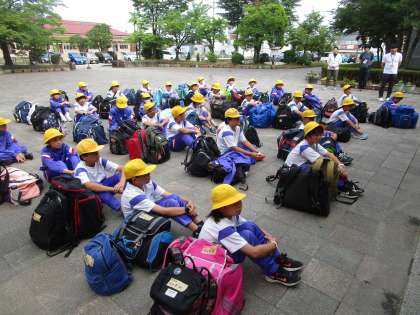 5年生 宿泊学習1 公開日 2024/06/27 更新日 2024/06/27 5年生 昨日からの宿泊学習で、子どもの村に行ってきました。出発式では、スローガンのように「LEVEL UP」することを校長先生に宣言しました。