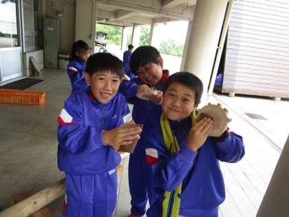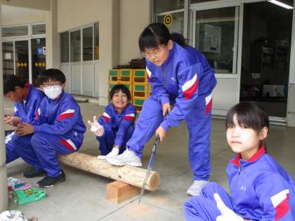 5年生 宿泊学習3 公開日 2024/06/27 更新日 2024/06/27 5年生 最初の活動は、壁飾り作りです。丸太を切って磨き、焼き印を押してデコレーションをしました。世界に一つしかない壁飾りができました。