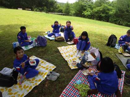 お弁当を食べている様子です。おいしいお弁当を作ってくださってありがとうございました!