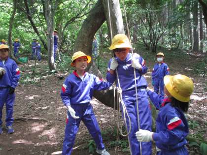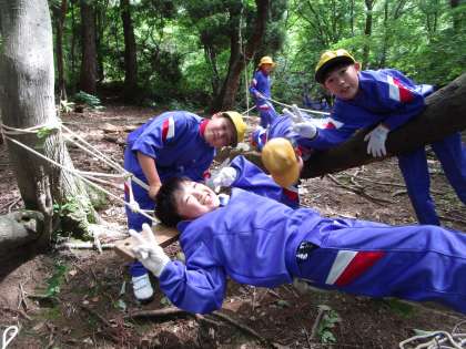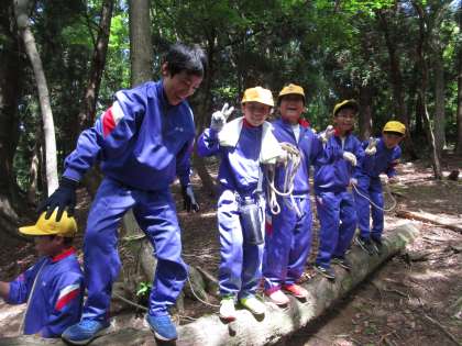 午後からは、ワイルド遊びです。ワイルドゾーンの木にロープを結びつけて、オリジナルの遊具を作って遊びます。