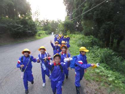 5年生 宿泊学習10 公開日 2024/06/27 更新日 2024/06/27 5年生 夜の活動はナイトハイクです。薄暗い道を班の仲間と協力して進みました。森の中は怖い雰囲気が漂っていましたが、みんなで声をかけ合い、乗り切りました。