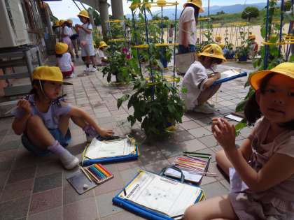 どんどん大きくなっていくあさがおに大喜びの子供たち。