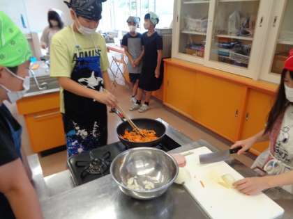 6年生 調理実習 公開日 2024/06/28 更新日 2024/06/28 6年生 いろどり炒めの調理に挑戦しました。野菜の切り方や炒める時間に気を付けながら、班の仲間と協力しながら調理に取り組んでいました。