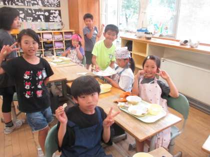 今日、2年生は畑で収穫したじゃがいもを、調理して食べました。子供たちは、「おいしい!」と喜んでいました。一人一人育てている野菜の方も続々と収穫が進んでいます。子供たちは、調理等して学校で食べたり、持ち帰ったりしています。
