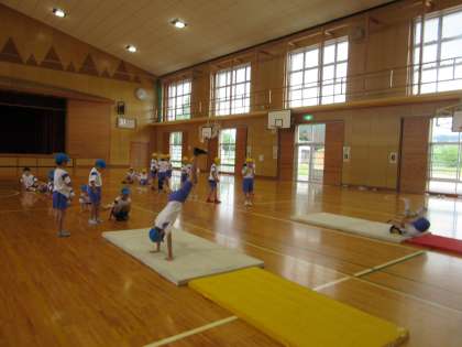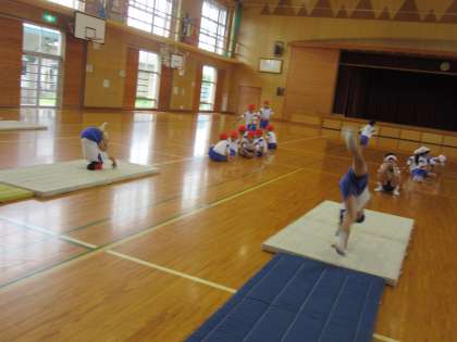 3年生 体育科 公開日 2024/07/04 更新日 2024/07/04 3年生 マット運動に取り組んでいます。発表会では3つの連続技を披露する予定なので、スムーズな技のつながりについても考えていました。
