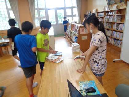 夏休みに読みたい本を借りました。どんな本を読もうか迷いながらも楽しみながら選んでいました。夏休みの機会に読書に親しんでくれると嬉しいです。